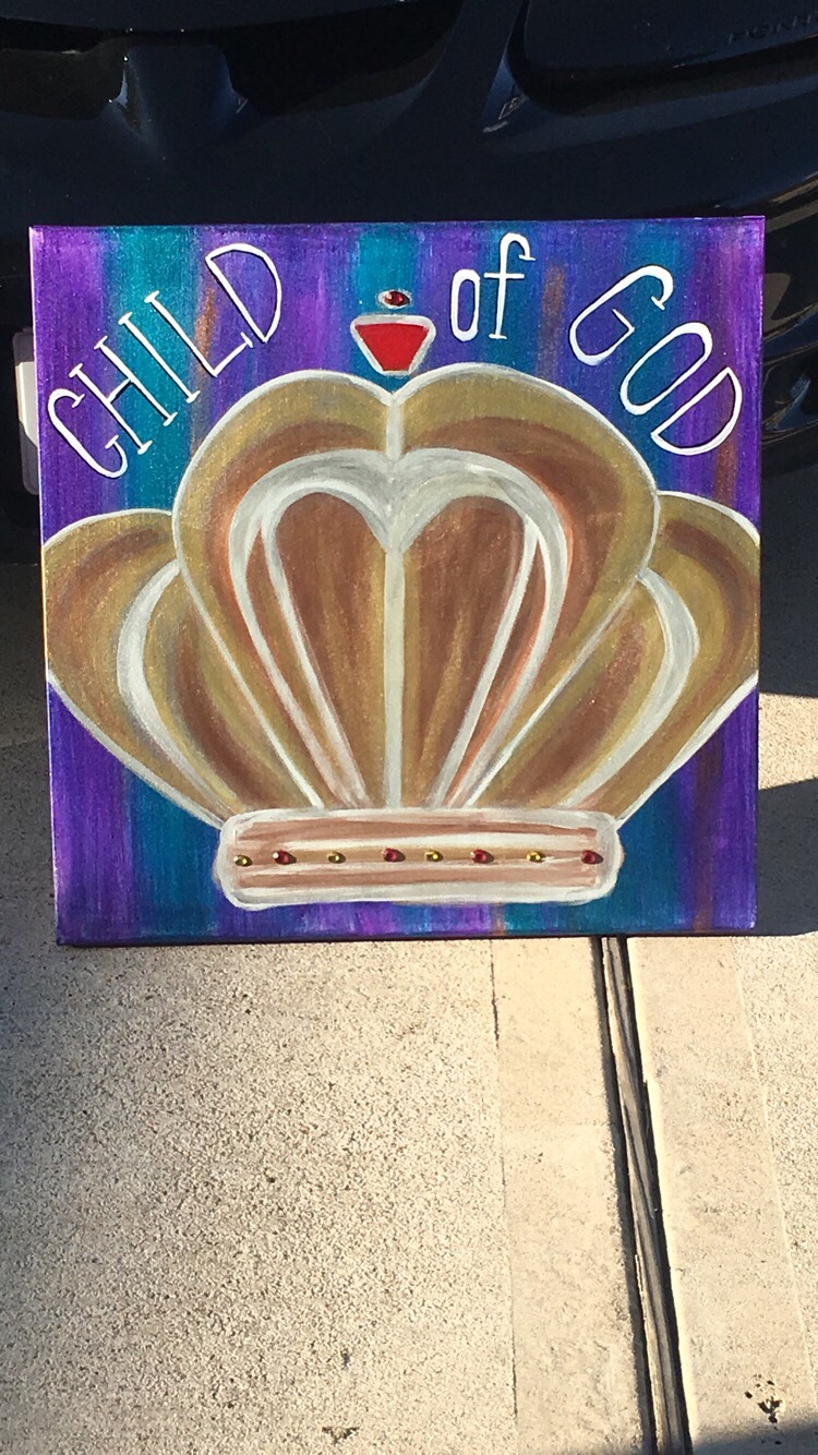You may be wondering well what does creative worship look like? We sing, we dance, I do a live painting to a song with a hidden message that the Holy Spirit places in my heart to preform. We then have a time for a message as my friend shares God’s father’s heart and that we are his daughters, and she goes over salvation and has a moment where the woman can receive Jesus as their savior. It’s absolutely the most beautiful thing! Then we show them that we can also worship through art and we allow them to have fun painting on a 8 by 10 canvas! This summer we focused on Daughter of a King so it was fitting they would paint crowns decorated with beautiful exotic jewels!